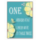 Spring inspired yellow flowers, yellow social butterfly and three white Bunco dice. Spring themed Bunco table cards are perfect for allowing your guests to move from table to table. Table card #1