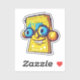 A cartoon character who is bright yellow and has rectangular head and rounded glasses with buck teeth