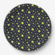 Paper plates featuring a yellow stars pattern against a dark blue background. They are great for any celebrations.