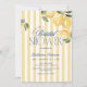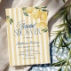 Celebrate the bride-to-be with a vibrant and stylish touch using our citrus theme bridal shower invitation. Featuring bold yellow stripes paired with rich blue typography and watercolor lemons, this design brings a fresh, modern twist to a retro-inspired aesthetic.