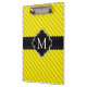 Yellow Stripes Pattern Black Custom Monogram Clipboard