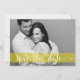Customisable save the date flat card featuring whimsical calligraphy script and yellow and white stripes. A fun and festive save the date photo announcement.