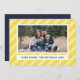 A modern but timeless holiday card featuring personalised photo on a striped tonne sur tonne yellow background.