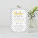 An elegant and classy twins baby shower invitation for mothers to be who are expecting twins of boy and girl. It features a pair of yellow strollers with polka dots pattern which will keep your guests guessing on the gender of the little ones. Background of grey and white chevron background. Personalise easily with your party details.