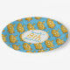 Personalised cute, cartoon yellow submarine boy's birthday party paper plates. Great for an underwater or under the sea transportation theme birthday. Blue waves / water and a yellow submarine.