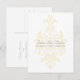 Modern with chic elegance describes this sophisticated Subtle Damask Save the Date Postcard with a light yellow damask flourish background. This classic save the date is perfect for announcing a traditional wedding and can be easily customised with your wedding details. For more customisation options, click on the Customise It button.