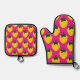 Yellow Summer Strawberries on Hot Pink Oven Mitt & Pot Holder Set