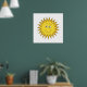 A sun with a happy smiling face, in yellow on white. A fun summer design.