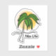 Bright yellow Sun with green palm on beach “PalmLife” sticker