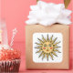 Yellow sun with a face square sticker