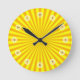 A cheerful clock in a very simple "sun burst" pattern of bright and dark yellow.