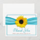 Yellow Sunflower Aqua Ribbon Wedding Thank You Card