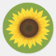 Yellow Sunflower Cartoon Illustration On Green Classic Round Sticker