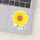 A sunny and bright design featuring a close-up photo of a sunflower with a template for first name.
