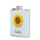 Yellow Sunflower Girly Floral Blue Hip Flask