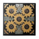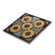 Yellow Sunflower on Black Art Deco inspired Ceramic Tile