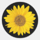Yellow Sunflower on Black Classic Round Sticker