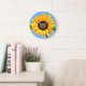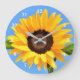 Wall Clocks with Yellow Sunflower Against Sun on Blue Sky - Summer Day - Photo Flower Nature - You can also personalize - Choose / Add Your Unique Photo - Image / Text - Name / Color / Font / Size / more - Make Your Special Clock Gift - Resize and move or remove and add image / text with customization tool. Design by MIGNED. Please see my other projects / designs and paintings. You can also transfer my designs to more than 1000 Zazzle products.