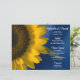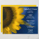 Customize the pretty Yellow Sunflower on Blue Wedding Menu with the details of the meal that you will serve at your wedding rehearsal dinner, bridal shower luncheon or marriage reception by adding the salad or first course, entree or second course and dessert or third course. Personalize it with the names of the bride and groom, venue location and event date. This elegant flowery wedding menu features a floral photograph of a yellow sunflower blossom on a blue background.