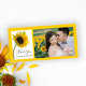 Send thoughts of appreciation and gratitude after your summer or fall engagement party, bridal shower or nuptials with the pretty Sunflower on White Wedding Thank You Photo Card. This elegant custom flowery wedding thank you photocard features a close up floral photograph of a yellow sunflower blossom on the stem in a glass vase with a bright white background.