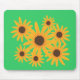 Painting of a yellow orange sunflower is printed multiple times on green mousepads. Can be customised with a different background colour.