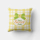 This cheerful indoor outdoor throw pillow features yellow and white plaid, a green bow, a pretty sunflower, and typography that reads “home sweet home.” This design is minimalistic and modern, so it will complement any style of décor. Personalise the text to fit your needs.