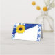 Yellow sunflower flower and royal blue floral and simulated ribbon wedding or other special occasion place cards. A pretty royal blue and yellow sunflower floral wedding place card design.
