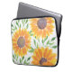 This unique laptop sleeve features a watercolor sunflower and foliage pattern in shades of yellow and green. Original Watercolor © Michele Davies.