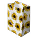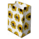 Bright mini yellow sunflowers decorate this gift bag. Also find matching tissue paper with bright yellow sunflowers.