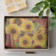 Yellow Sunflowers on Red Marble Decoupage Tissue Paper