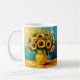 A beautiful personalised coffee mug with a gorgeous illustration of a yellow sunflowers in a pretty yellow vase done in an impasto style.