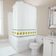 This shower curtain features a border of sunflowers with a green line above and below the border. The background is white. You can customise the curtain with your own photo if desired. You may contact me at jen@jenaleefamilystorykeeper.com if you need help.