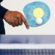 Cute digital painting of a yellow sunshine in blue sky. Adults and kids custom ping pong paddles. Edit name to customise. Gift idea.