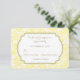Wedding RSVP cards in elegant and contemporary light lemon yellow, sand taupe brown and white classic and chic floral vintage damask pattern. Customisable with your wedding details, available in many matching wedding products.