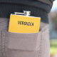 This yellow flask features a white and black, taxi-cab-inspired, chequered stripe along the bottom. At the top is a place for your own name!