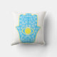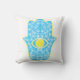 Yellow Teal Hamsa-Hand of Miriam-Hand of Fatima.pn Cushion
