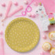 modern yellow mustard teardrop or raindrop featured paper plate for children's parties or soirees, first birthday, kid party, baby shower adult party 30th birthday, 40th birthday