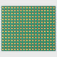 Photograph of a yellow hub tractor tire repeated on green (customisable) background colour.