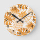 Yellow tropical pineapple golden white botanical round clock