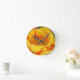 Vibrant yellow tulip clock. Brighten up your lounge, kitchen or bedroom with this splash of color. The yellow tulip streaked with scarlet combined with the black hands make for a unique, stylish clock that will make you smile every time you check the time.