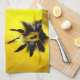 Close up of a yellow tulip bloom showing the stamen and pollen