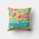 Yellow Turquoise Modern Pasley Pattern Monogram Cushion