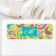 You will love this colourful stickers featuring a whimsy paisley pattern design and personalised with your monogram, initials or name. The bold colours of this trendy paisley design features a sunny yellow background with a turquoise blue emblem area for personalisation. Bright, fresh, modern paisleys make a beautiful artistic design that includes inspirational words of Love, Hope, Faith, Inspire, Cherish, Be Happy, Dream, and Live in the background between the paisleys. This Mod Paisley collection, designed by Phyllis Dobbs, uses the colours of teal, turquoise, lime green, wine, yellow, fuchsia and orange to create a fun and whimsey take on the traditional and popular paisley motif. The paisley motif is timeless in appeal but this original art is both trendy and contemporary. Fully customisable for personalisation with your own words to add your own message.