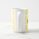 This modern two photo mug features yellow squares and a sweet picture of Olive, a beautiful Labrador mix. Photos are customisable.