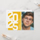 Modern yellow graduation party invitations featuring an eye-catching class year layout in a varsity font, a photo of the grad, two white stripes, their name, school, and an easily personalised party invite template, these sporty invites will make your celebration a memorable one.