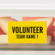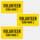 featuring title "Volunteer" and team name in black bold sans serif font on yellow background.
