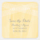 Classic and elegant Watercolor Deco Save the Date Stickers with a modern striped criss-cross hatched art deco design in white and a subtle yellow watercolor look background. These simple and chic save the date stickers can be easily customised with your wedding details. For more personalisation options, click Customise.