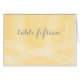 Classic and elegant Watercolor Deco Wedding Table Number Card with a modern striped criss-cross hatched art deco design in white and a subtle yellow watercolor look background. This simple and chic table card can be easily customised with your wedding details. For more personalisation options, click Customise.