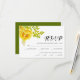 Yellow watercolor bouquet of flowers script typography wedding RSVP card with meal choice. It features a beautiful bouquet of cactus flowers and succulent leaves in yellow and your text. The word RSVP is in script typography. The back is of solid green colour.
