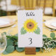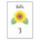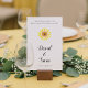 A wedding table number card showcasing a vibrant yellow watercolor sunflower with lush green leaves on the front, and a special message along with your wedding date on the back. Please be sure to personalize both sides of the card.